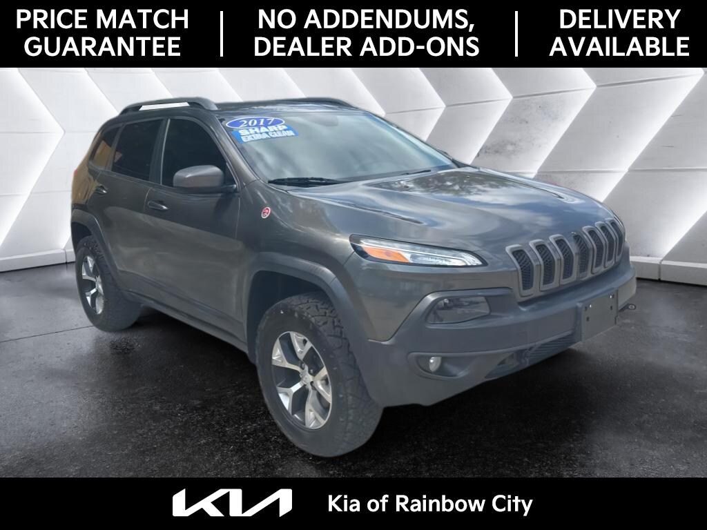 If you want a rugged, well-equipped SUV with proven V6 power, 4WD confidence, and desirable comfort features like leather and Xenon lighting, this 2017 Jeep Cherokee Trailhawk is ready for your next journey. Contact us in Rainbow City to schedule a visit.